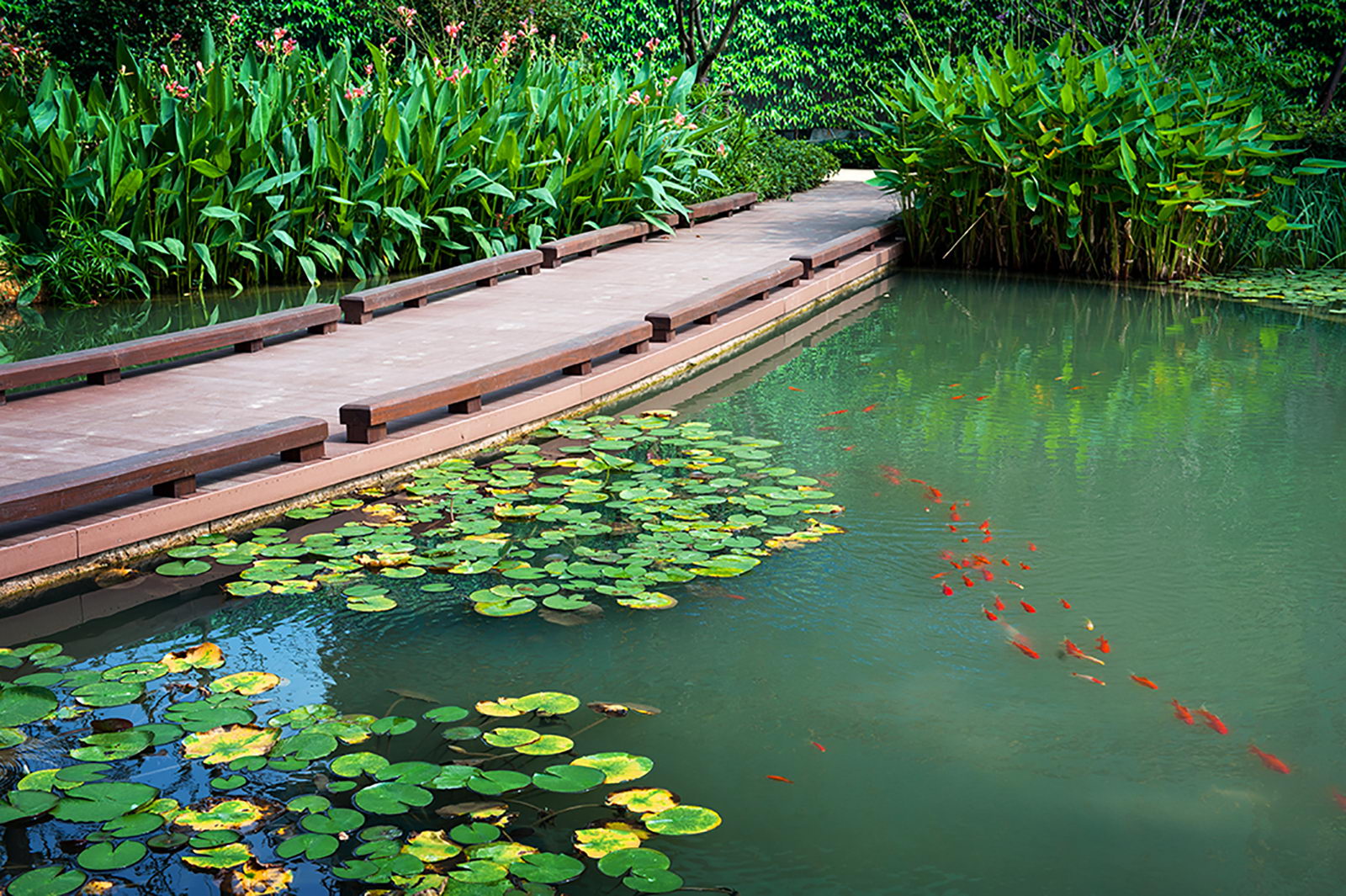 整個小區的景觀設計在當時借鑒日本人居設計思想,樓盤的總體定位即以高雅、藝術、自然共生為理念,融入精巧設計,對景觀細節進行了一一呈現,疊石理水,以“水岸共生、居隱書香”為主題,構筑蘊涵傳統園林的空間布局和現代園林精華的景觀環境。