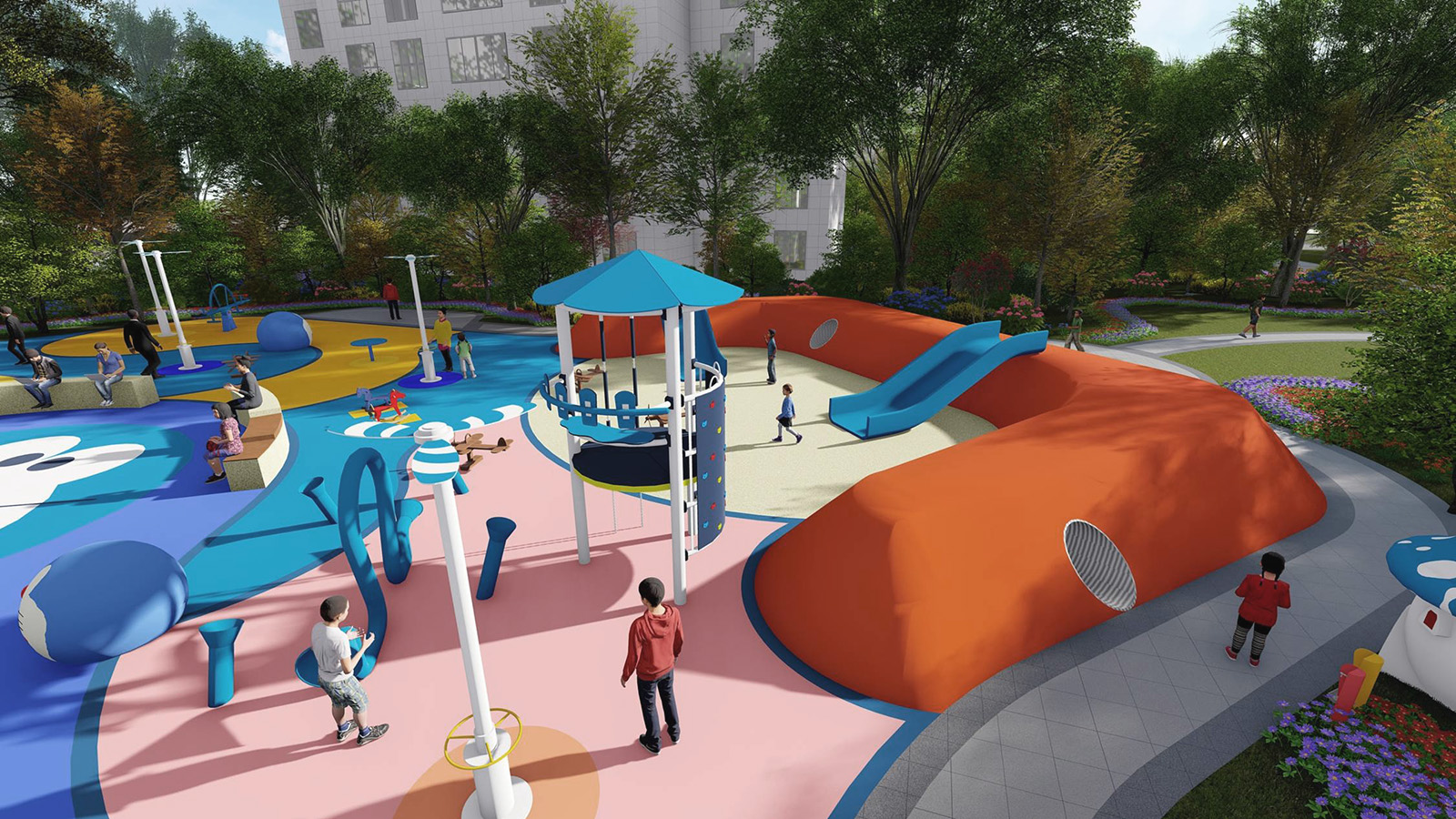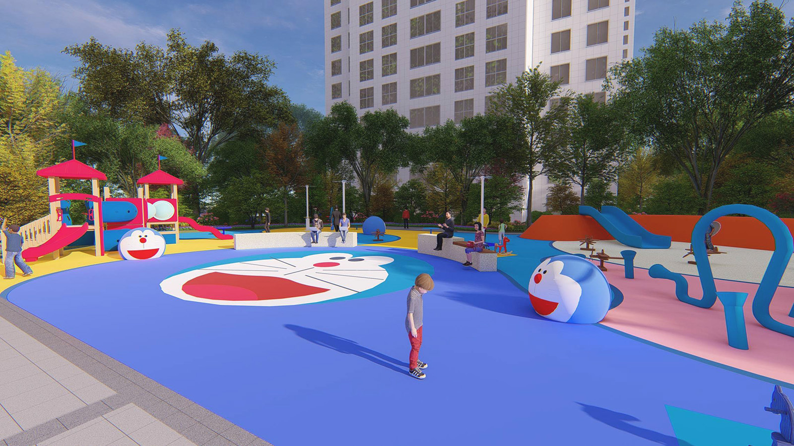 兒童活動區(qū)以五感體驗為設(shè)計理念,融入經(jīng)典卡通形象“哆啦A夢” 為設(shè)計主題,通過新穎的互動性設(shè)計充分調(diào)動兒童的聽覺、視覺、味覺、嗅覺、觸覺體驗,使兒童獲得獨特的感官體驗的同時,童夢童享,啟發(fā)兒童想象力、創(chuàng)造力,并為整個家庭創(chuàng)造一個寓教于樂的優(yōu)美園林空間環(huán)境。