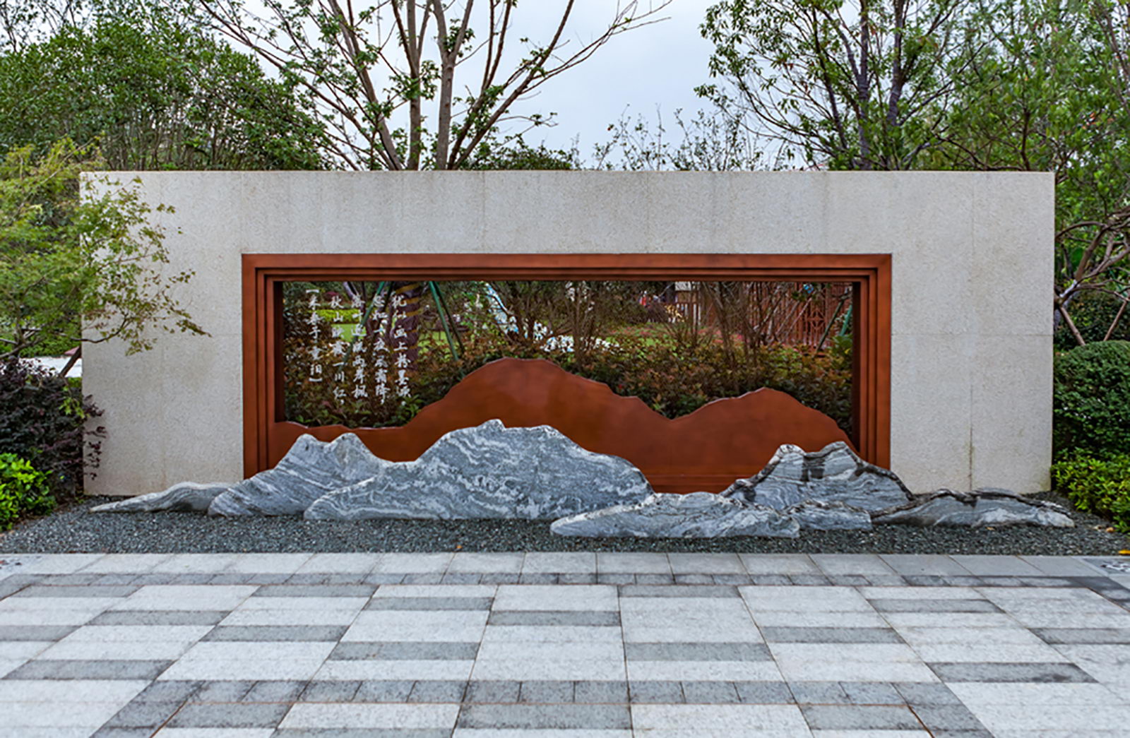 主題旱溪借用蘇州古典園林“破隅” 設(shè)計手法,以微縮旱溪作為耒水一隅一脈,與耒水虛實輝映,以小見大,互妙相生。