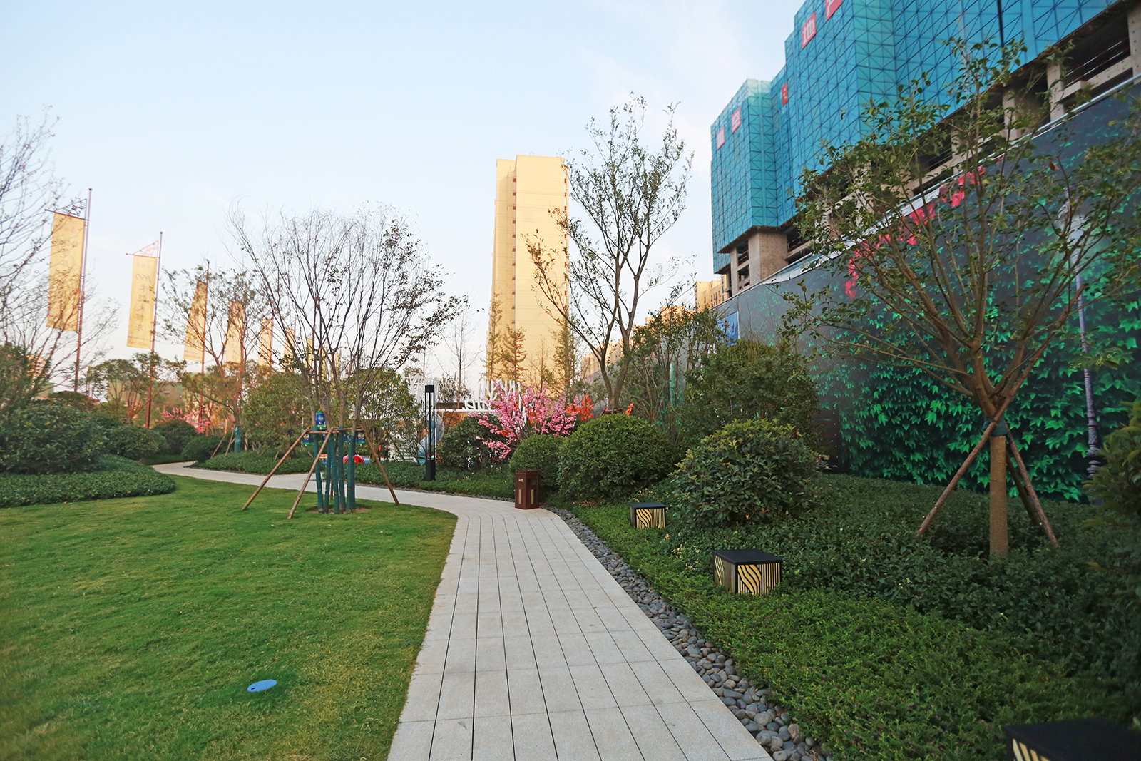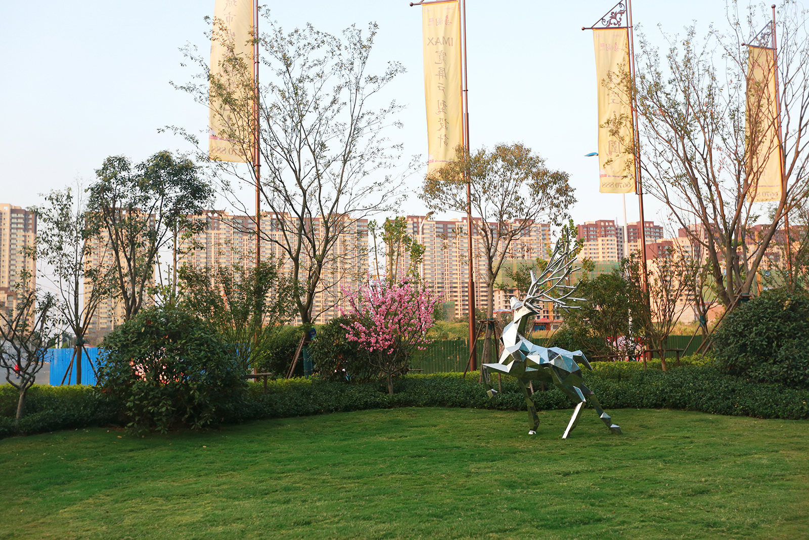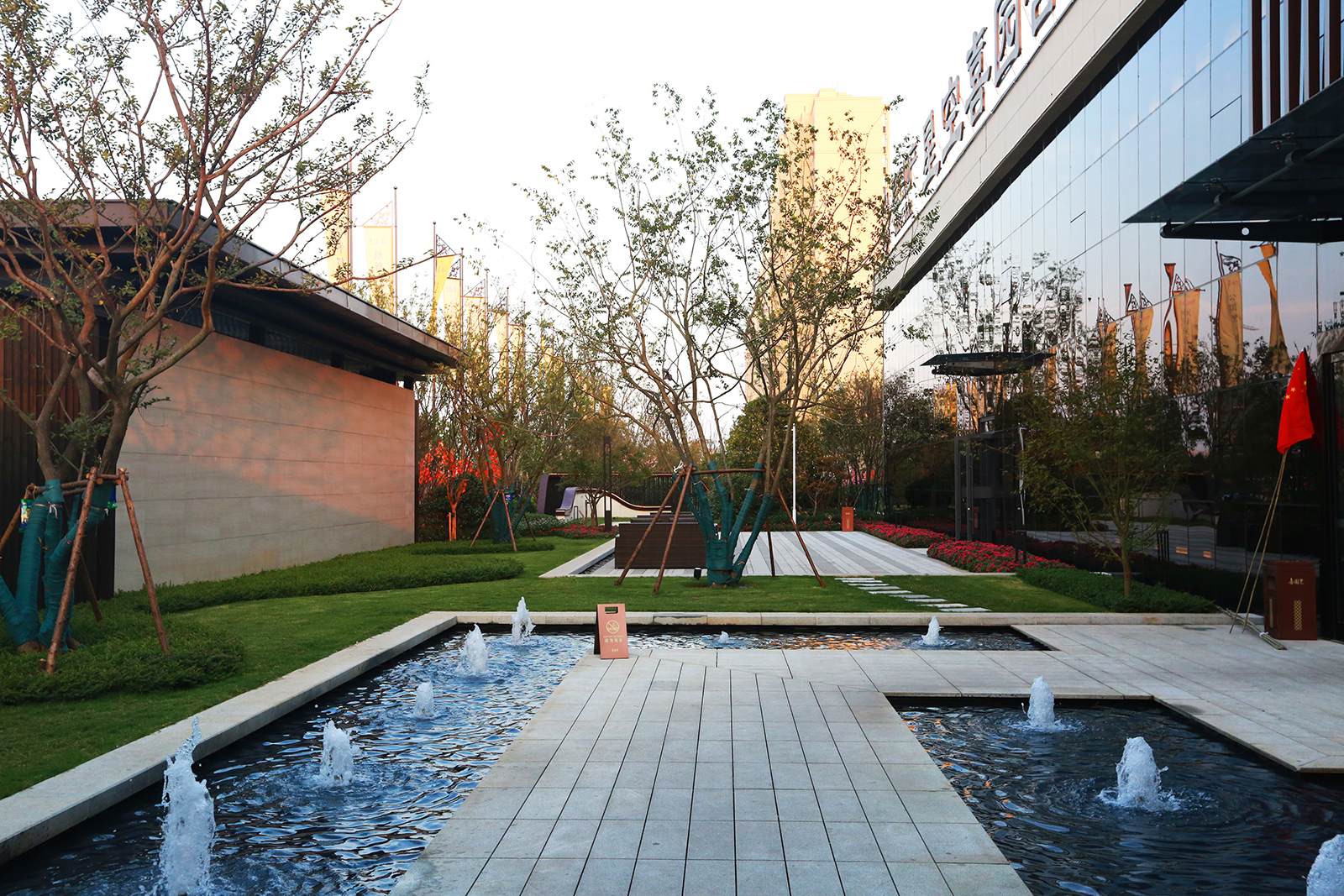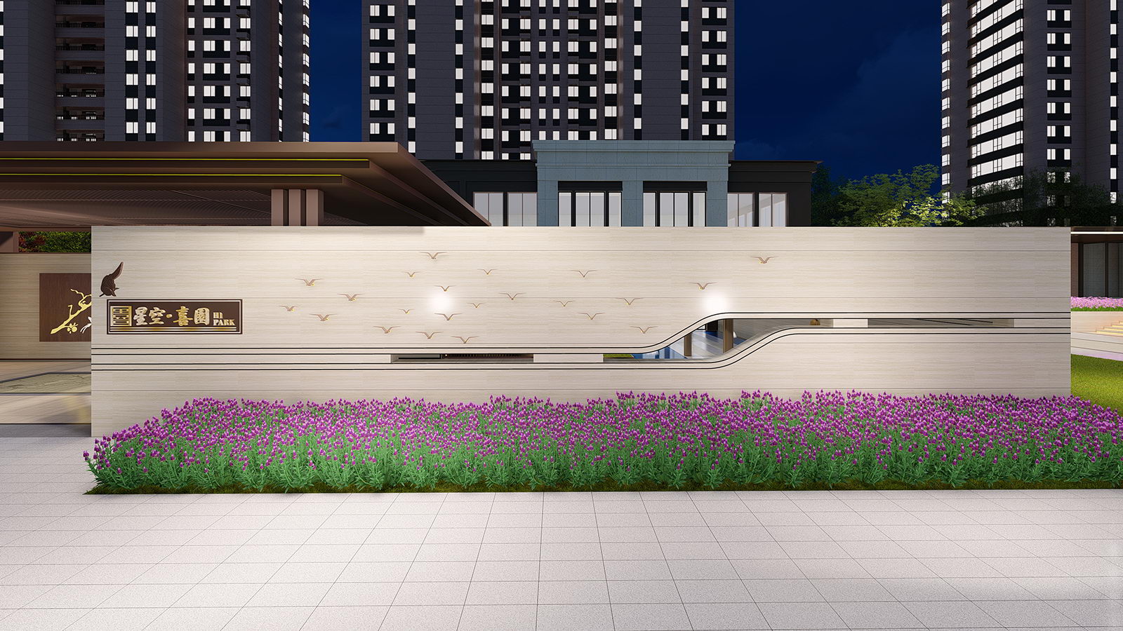 迎賓廣場平坦開闊,疊水水景與臺階組合現(xiàn)代、精致、優(yōu)雅,水景布置有鵲歸巢主題雕塑,禮迎業(yè)主歸家,彰顯小區(qū)尊享品質(zhì)。