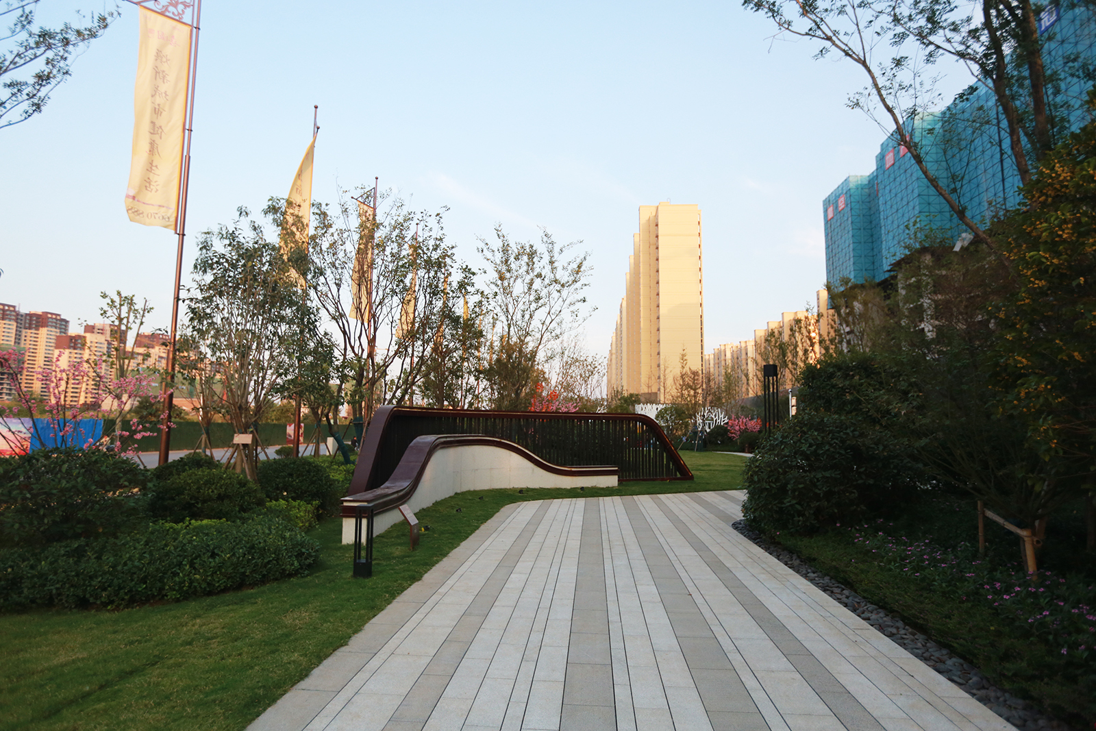 置業(yè)顧問引導(dǎo)客戶到達(dá)休閑平臺,空間開闊,綠植分布周圍,對景草階現(xiàn)代新穎,草坪上散布的藝術(shù)裝置增添景觀亮點,為客戶創(chuàng)造心曠神怡的身心感受,品味整個示范區(qū)的優(yōu)雅品質(zhì)。