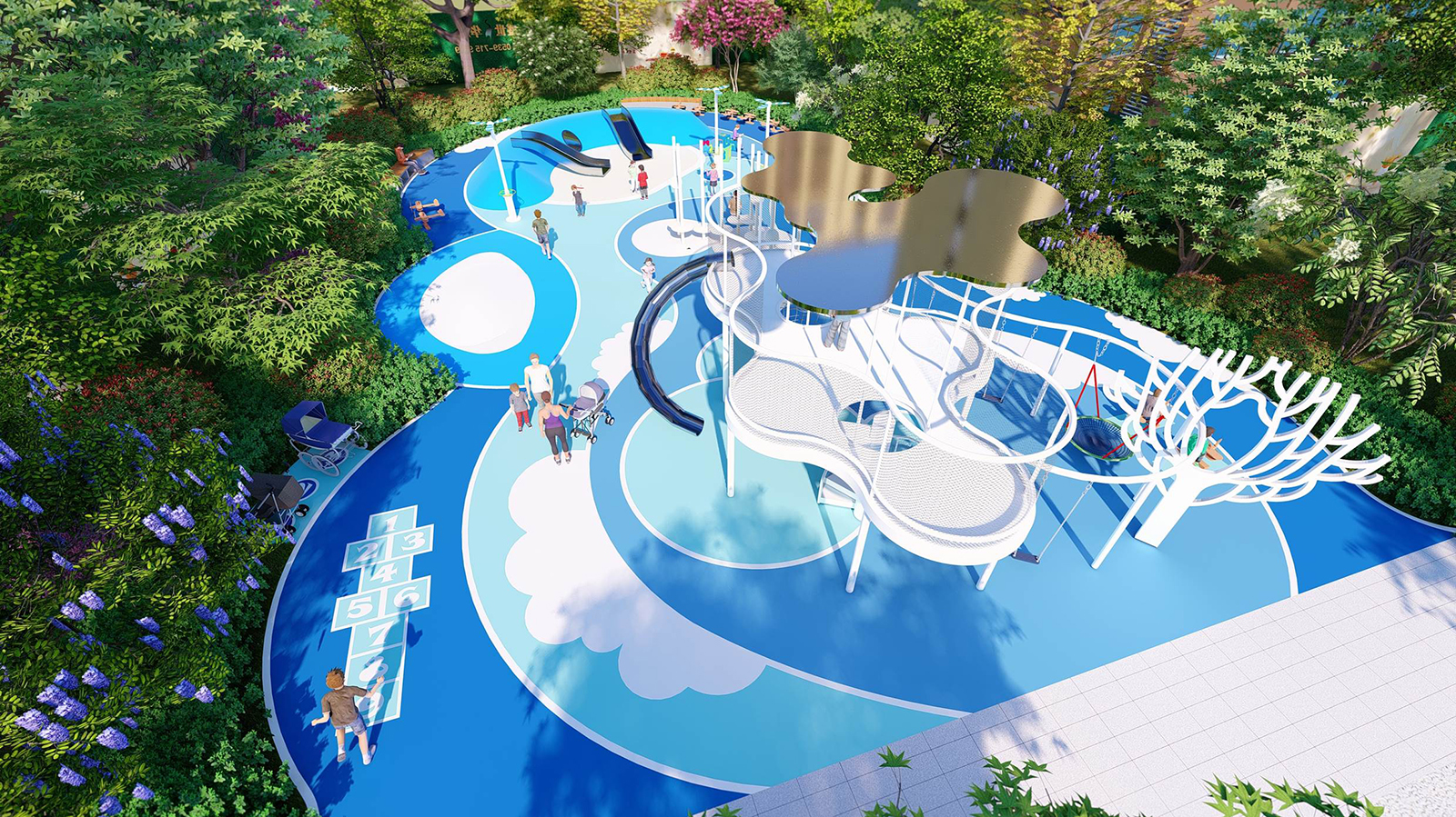 孩子是未來和希望, 盛世華府的設計過程一直都在思考場地與人群體驗之間的關系,“業主的訴求”和“孩子們真正的體驗”是否能夠統一。